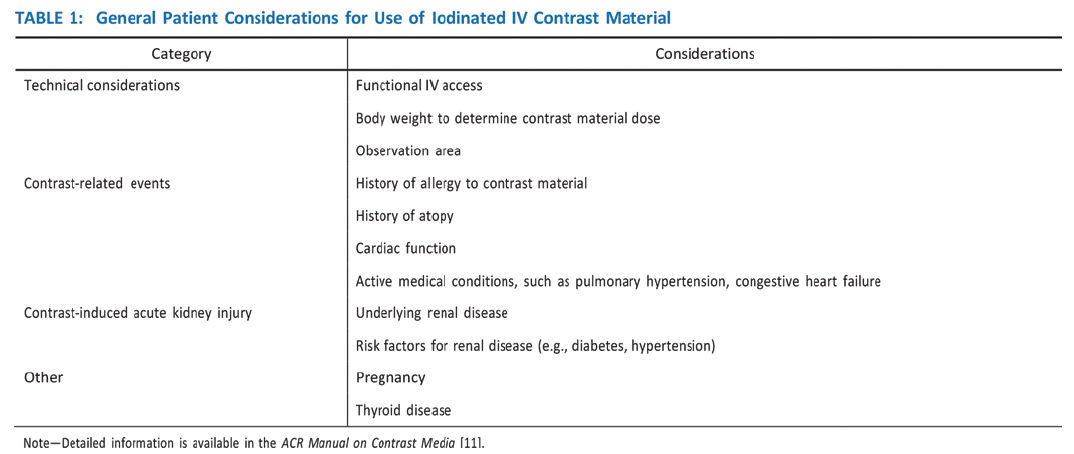 The safety assessments and care to minimize contrast-related events invariably prolong the patient’s time in the imaging department. There is the additional logistical challenge of finding time, room, and personnel for insertion of the IV line (Table 1).