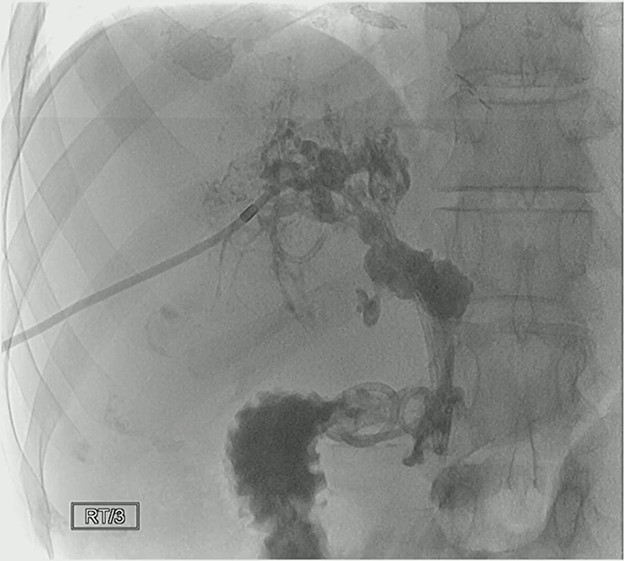 Bottom Line: Whereas ERCP with plastic stent remains common, it may not always be an effective intercession, especially in advanced cases. In this instance, percutaneous biliary tube placement proved to be a successful alternative to bridge the patient to liver transplant.